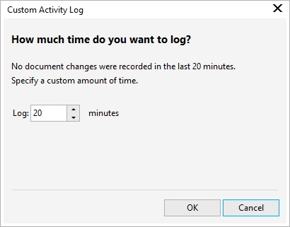Custom Activity Log dialog box, specify the amount of time (in minutes) that you want to be tracked as work. For example, you may have been away from your desk for an hour. If you worked for 20 minutes during that hour on project-related tasks, you can choose to log only 20 minutes. The remaining 40 minutes will be discarded.