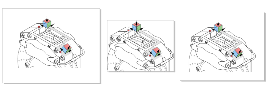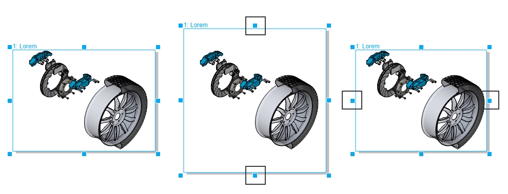 Left to Right: Original page. Dragging the top and bottom middle handles lets you scale a page vertically. Dragging the left and right middle handles lets you scale a page horizontally.