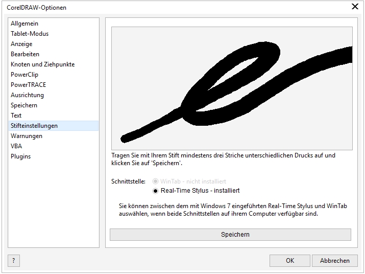 WinTab: Wird für Wacom-kompatible Stifttablets oder Geräte empfohlen |