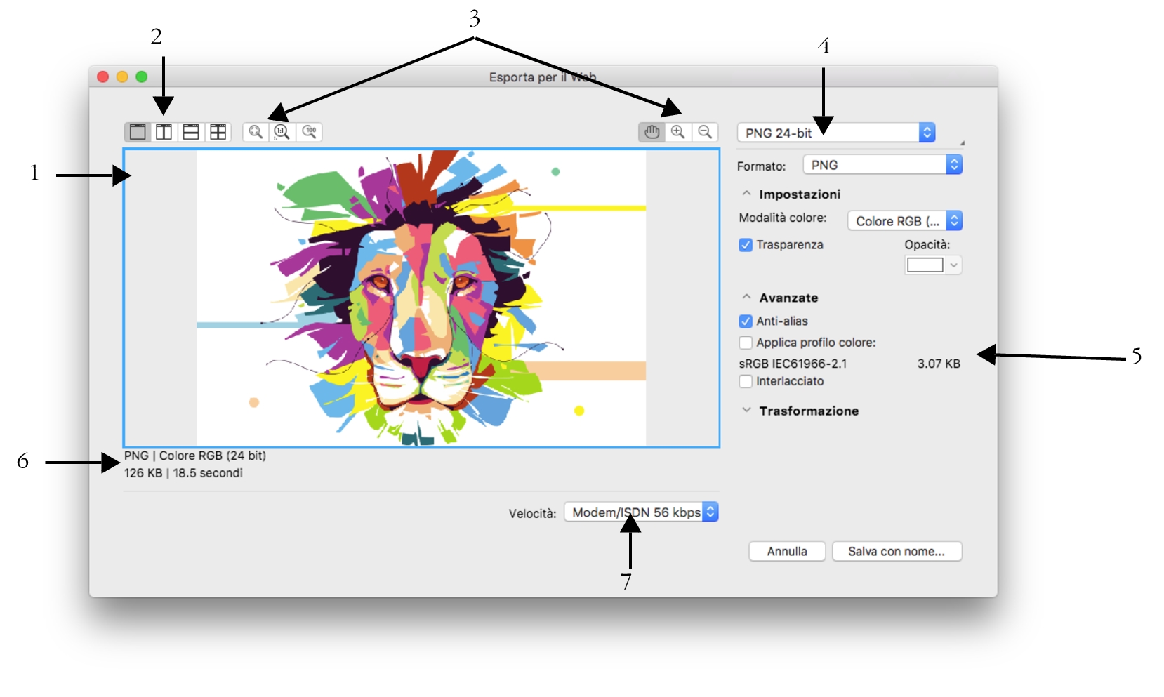 Esportare immagini per il Web