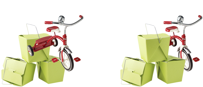 Durch das Ändern der Stapelfolge wird das Fahrrad hinter den Kisten platziert.