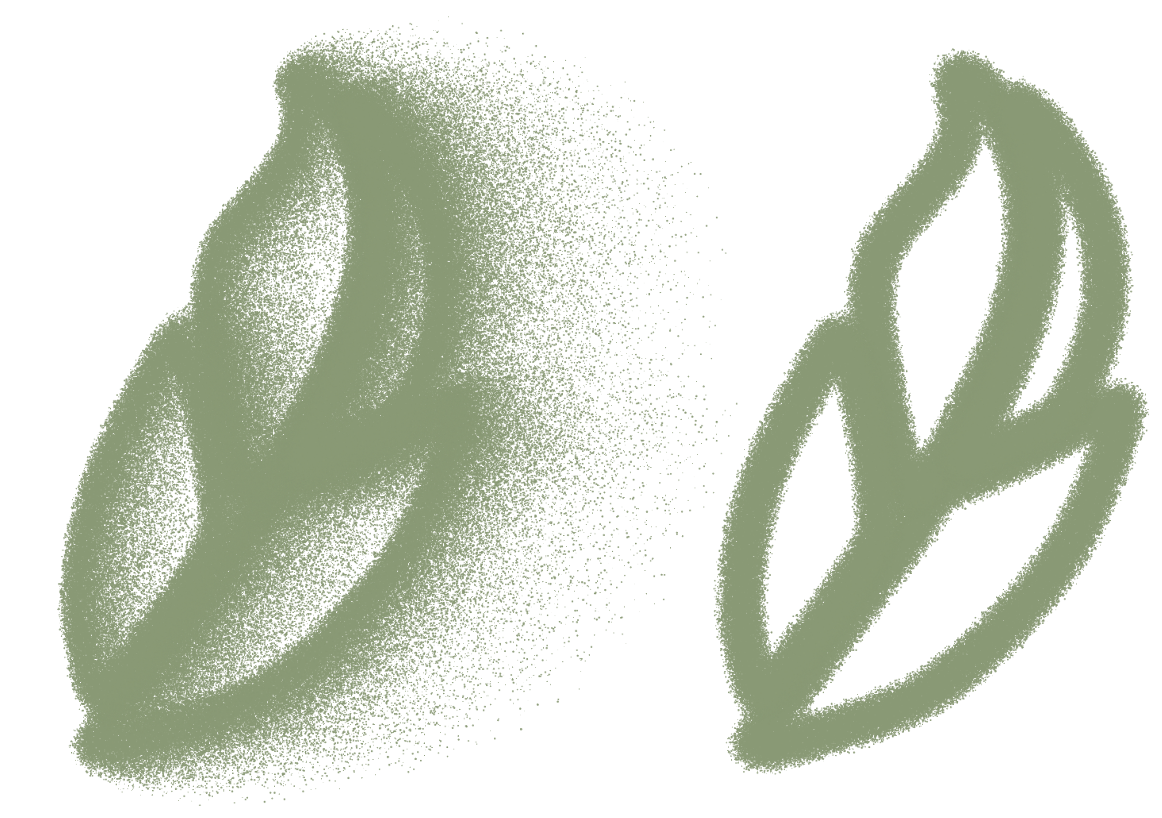 Strokes with (left) and without (right) pen-tilt angle simulation