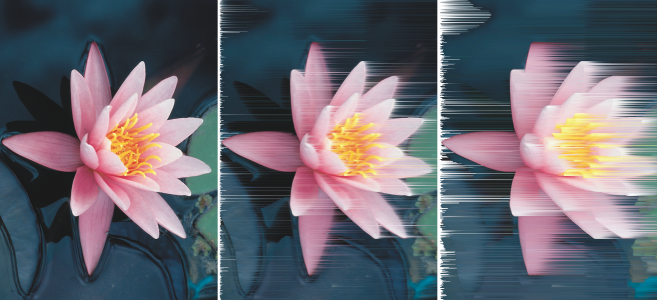È possibile ripetere l'ultima azione per intensificare l'effetto. L'immagine a sinistra è l'originale; nell'immagine centrale viene usato l'effetto del vento; l'effetto viene ripetuto nell'immagine di destra.