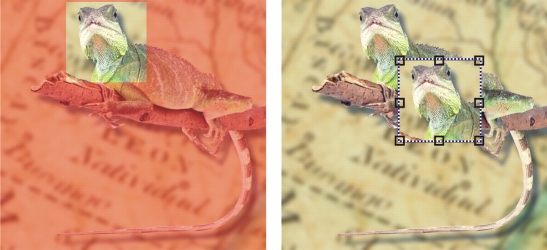 You can create an object by using part of an image background. Here, an editable area is defined and then the selection is copied and moved.