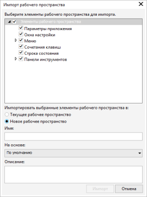 Можно импортировать рабочие пространства, созданные в версиях X6, X7 и X8.