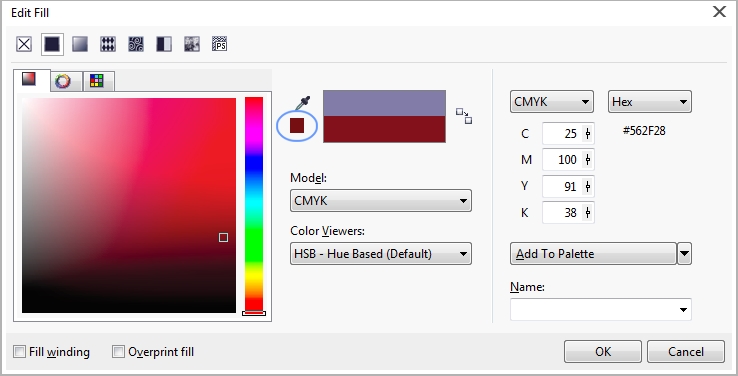 Custom color palettes can include colors from any color model, including palettes found in the Palette libraries, such as a spot color palette. You can save a custom color palette for future use. For more information about working with custom color palettes, see Creating and editing custom color palettes.