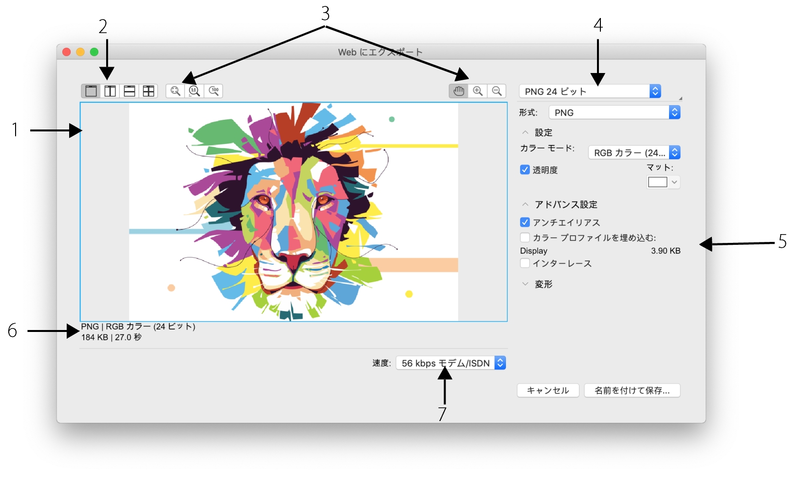 プリセット設定を使用して Web 対応ファイルをエクスポートできます。これにより、ここの設定を変更することなくファイルを最適化できます。また、特定の結果を生み出すために、設定をカスタマイズすることもできます。たとえば、カラー、表示画質、ファイル サイズなどを調整できます。