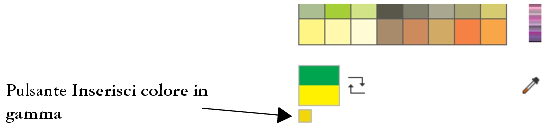 Se si sceglie un colore non presente nella gamma, Corel PHOTO-PAINT consente di sostituirlo con un colore simile compreso nella gamma della stampante. Per ulteriori informazioni, consultare Per sostituire un colore fuori gamma con un colore riproducibile. Per informazioni sulla correzione del colore, consultare Gestione colore.