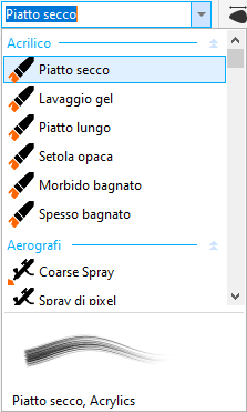 Posizionando il mouse su uno stile nel selettore pennelli viene visualizzata un'anteprima delle caratteristiche del tratto, ad esempio forma, texture e trasparenza.