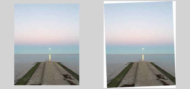 Immagine ritagliata dopo il raddrizzamento (a sinistra); immagine finale non ritagliata (a destra)