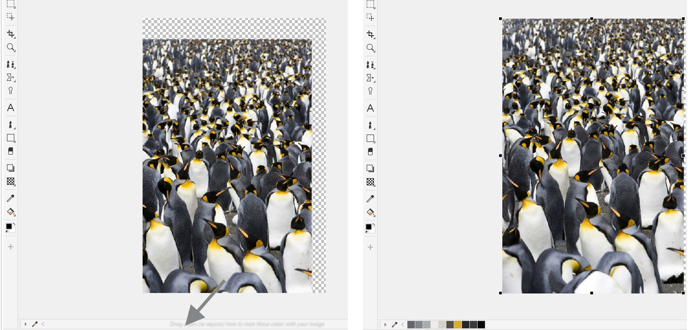 Перетащите объект в палитру изображения, чтобы добавить цвета.