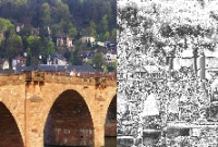 「舊報紙」特效會套用暖棕色色調並使影像變模糊,讓影像看起來像發黃的舊報紙。此特效最適合用於含有文字的影像。