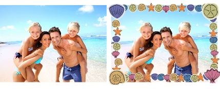 您可以使用「影像圖章」工具以物件集合進行塗畫。例如,您可以新增蝴蝶和甲蟲至野餐設定,或是用花朵框住圖片。您可以使用 Corel PaintShop Pro 提供的任一種影像圖章,或是自訂影像圖章。