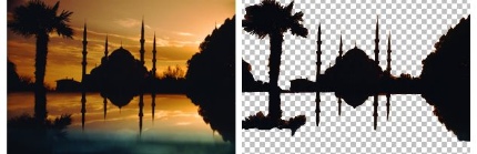 [画像の不透明度] - 画像の不透明度に基づいてマスクの透明度を決定します。不透明度が 100% のピクセルからは不透明度が 0% のマスク、不透明度が 50% のピクセルからは不透明度が 50% のマスク、不透明度が 0% のピクセルからは不透明度が 100% のマスクがそれぞれ作成されます。 |