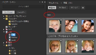 | • | [顔認識] - 顔の特徴を分析し、参照写真を使用して、考えられる一致のリストを作成します。類似の特徴を持った人物は、グループ分けされ、写真から人物を特定し易くします。同一人物のすべての写真が 1 つのグループになるまで、グループ間で写真を移動できます。その後で、グループに名前を入力すると、その人物の名前があるグループのすべての写真を自動的にタグ付けします。 |