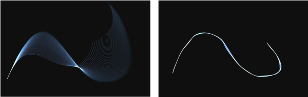 Mit dem Regler Beschleunigung wird der Abstand zwischen den Partikelpfaden festgelegt.