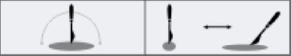 Startneigungswinkel des Eingabestifts (links); Endneigungswinkel des Eingabestifts (rechts)