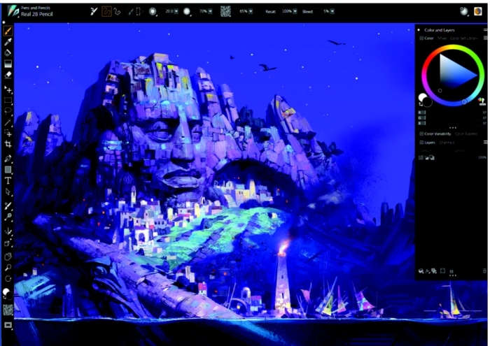You can choose a refreshing, professional interface that makes your artwork the focus. We have meticulously transformed the main user interface elements in Corel Painter 2019 to reveal a darker theme that allows the interface to melt away and painting to take center stage. For more information about themes, see Interface preferences.