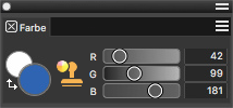 Mit dem Bedienfeld Farbe können Sie eine Farbe auswählen und sich Informationen zu der gewählten Farbe anzeigen lassen. Das Bedienfeld „Farbe" verfügt über zwei Anzeigemodi: „Kompakt" und „Vollansicht". In der Vollansicht werden sowohl das Farbrad als auch die Regler angezeigt. In der Kompaktansicht werden nur die Regler angezeigt.
