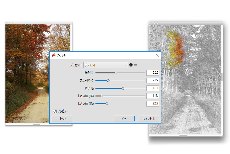 フォト (左) をスケッチ (右) に変換して、ペイント処理を開始します。