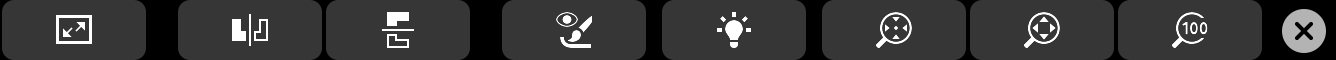 Touch Bar のコンテンツは、アクティブなブラシやツールに応じて変わります。たとえば、[アーティストの油彩] カテゴリ (上) からバリアントを選択した場合、Touch Bar にカラーを選択するコマンドが表示され、ブラシ サイズと透明度、ストロークのオプションが調整されます。[クローン] カテゴリ (中) からバリアントを選択した場合、Touch Bar からその他のコントロール (トレーシング ペーパーの表示/非表示など) にアクセスできます。Touch Bar を使用すると、便利なドキュメント オプション (下) にアクセスできます。書類ビューの切り替え、キャンバスの反転、拡大/縮小などを実行することができます。