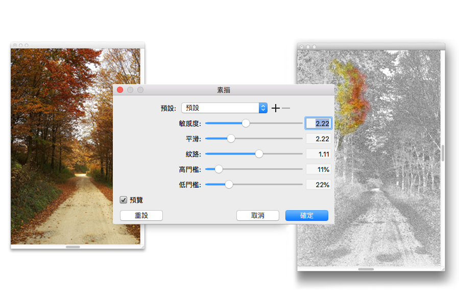 您也可以使用「自動繪製」功能來製作照片描繪。相關詳細資訊,請參閱自動繪製照片.