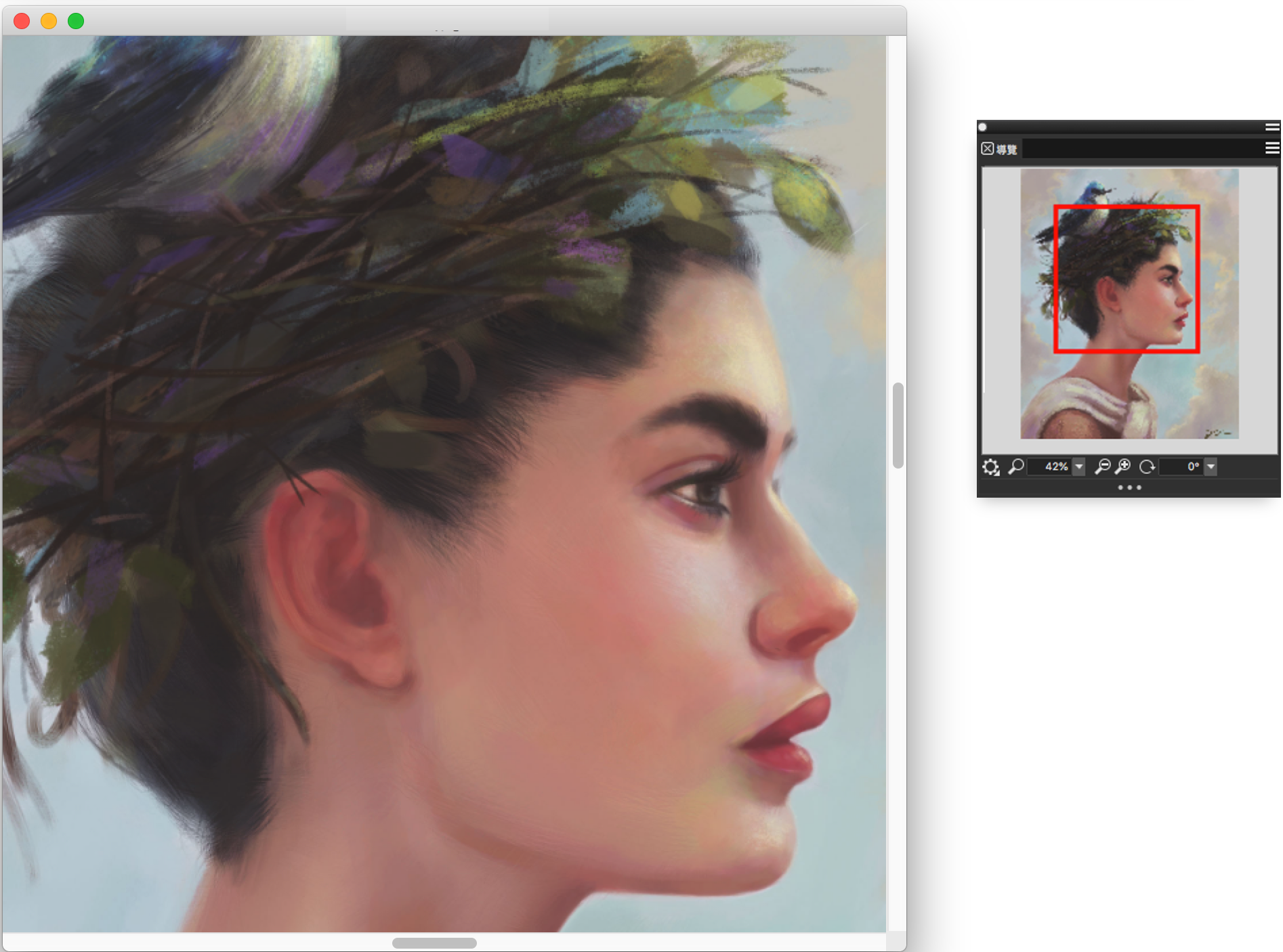 即使在放大時,「導覽」的畫布預覽也可讓您檢視整個影像。Wei Hu 的作品。