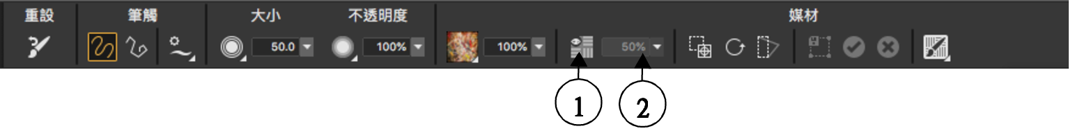 套用材質時,您可以指定「材質」筆刷會如何與先前套用的筆刷筆觸相互作用。相關詳細資訊,請參閱自訂材質筆刷.