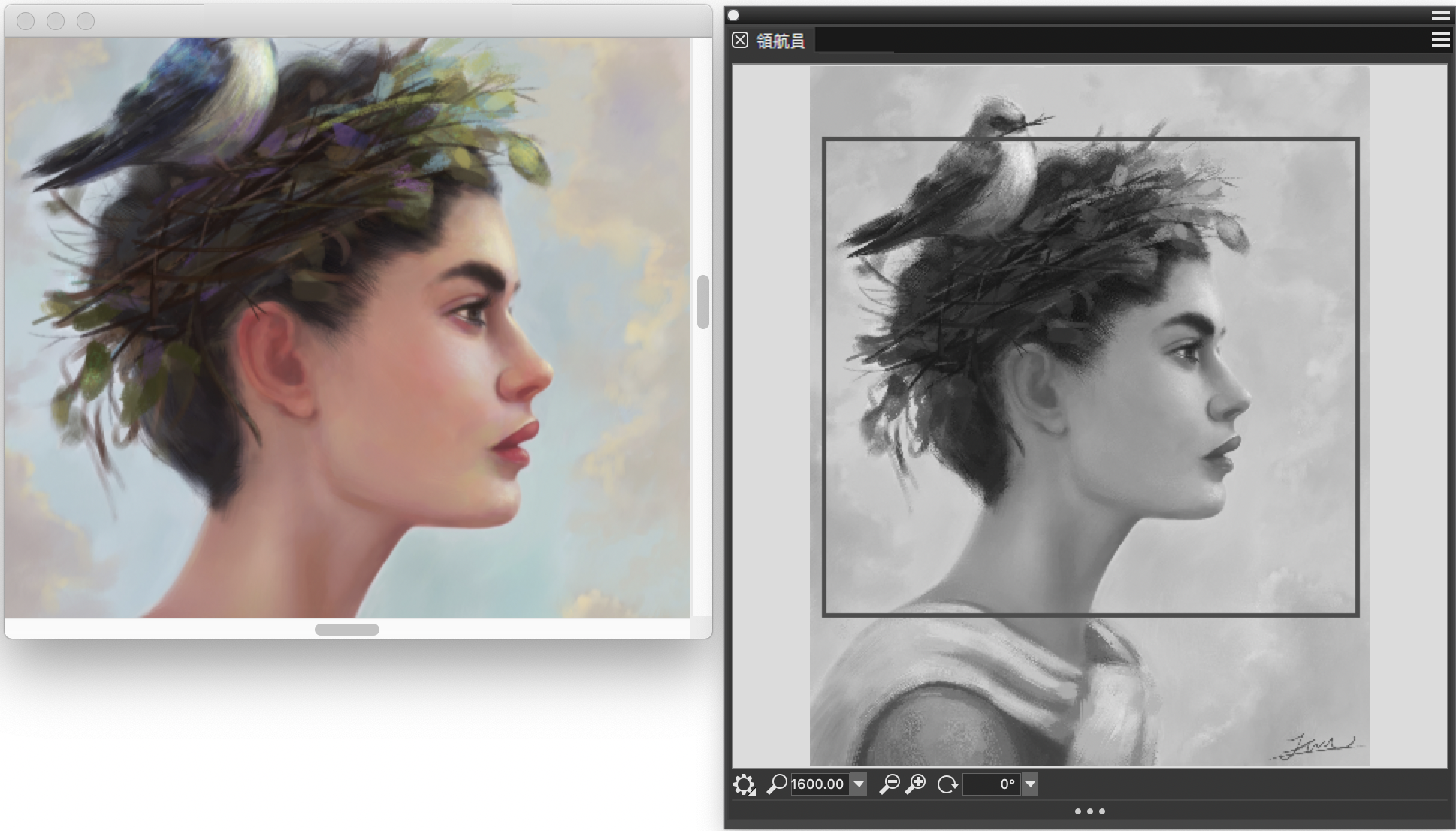 您現在可以將「導覽」切換為灰階,這對於進行構圖的色彩值檢查非常有用。相關詳細資訊,請參閱導覽影像與檢視影像資訊.