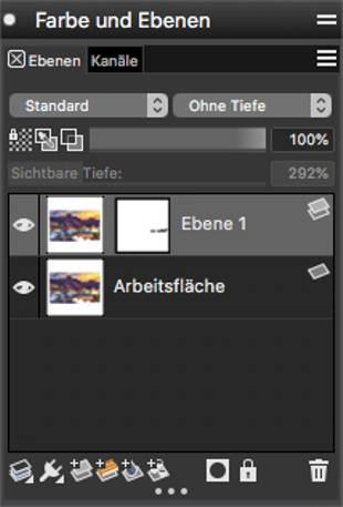 Ebene erstellen. Achtung: Einige Effekte können nicht mit Standardebenen reproduziert werden.