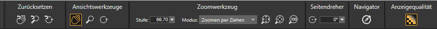 Die Eigenschaftsleiste des in der Werkzeugpalette ausgewählten Werkzeugs Hand
