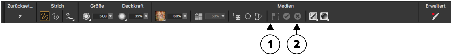 Bei der Anwendung von Strukturen können Sie festlegen, wie die Strukturmalwerkzeuge mit den zuvor aufgetragenen Malstrichen interagieren. Weitere Informationen finden Sie unter Strukturmalwerkzeuge anpassen.