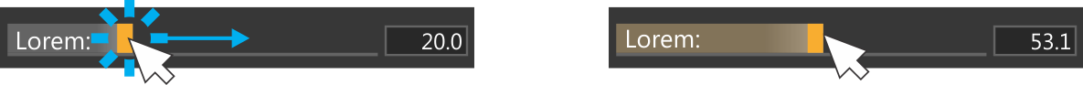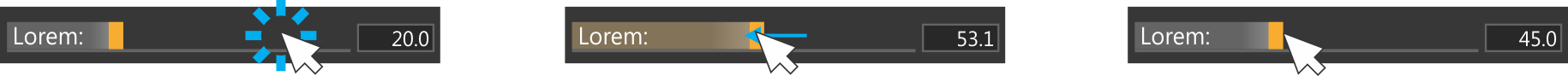 Werte können mit Schiebereglern auf verschiedene Arten geändert werden. Sie können irgendwo entlang des Schiebereglers klicken oder den Kontrollpunkt mit dem Mauszeiger verschieben. Um einen Wert präzise anzupassen, können Sie Hilfstasten verwenden oder den Wert in 1%-Schritten anpassen.