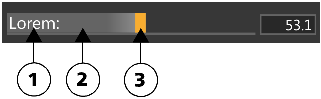Der Name (1), der Ziehbereich (2) und der Steuerpunkt (3) eines Schiebereglers. Wenn Sie mit dem Mauszeiger über einen Schieberegler fahren, wird der Endpunkt (3) hervorgehoben.