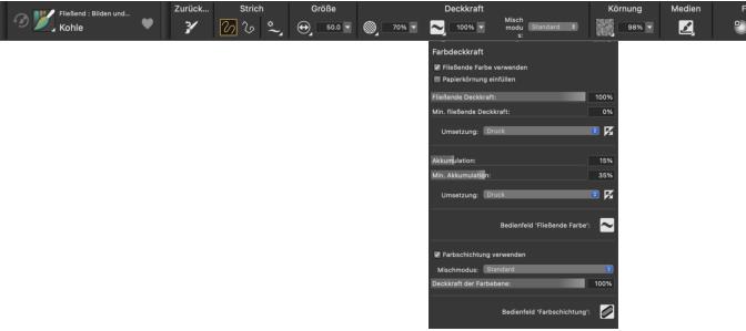 Über das Flyout Farbdeckkraft in der Eigenschaftsleiste können Sie auf die wichtigsten Steuerelemente für Fließende Farbe zugreifen.
