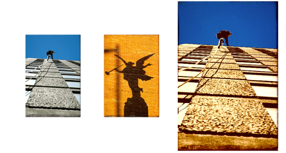 One method you can use to prepare a photo for painting (left) is to choose a source image (center) that contains the colors and tones you want to use. The color and tone of the source image can be applied to your photo to create an underpainting (right).
