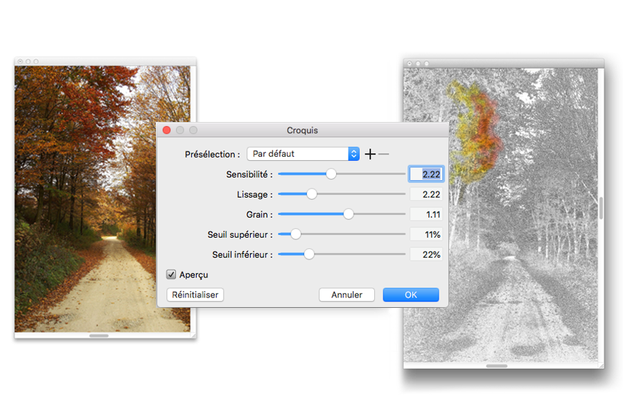 Corel Painter vous permet de créer rapidement un croquis à partir d’une photo, puis de l’utiliser comme guide pour appliquer une couleur. Pour conserver l’intégrité du croquis, appliquez la couleur aux calques et non pas directement au croquis. Par ailleurs, selon l’effet désiré, l’utilisation de calques vous donne la possibilité d’incorporer les marquages du croquis dans l’image finale. Si vous préférez que le croquis n’apparaisse pas dans l’image finale, vous pouvez le supprimer en effaçant le contenu de la zone de travail. Une fois l’opération terminée, vous pouvez déposer les calques dans la zone de travail.
