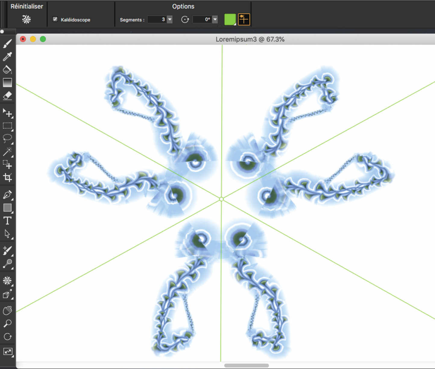 Appliquez des coups de pinceau dans n’importe lequel des segments de kaléidoscope.