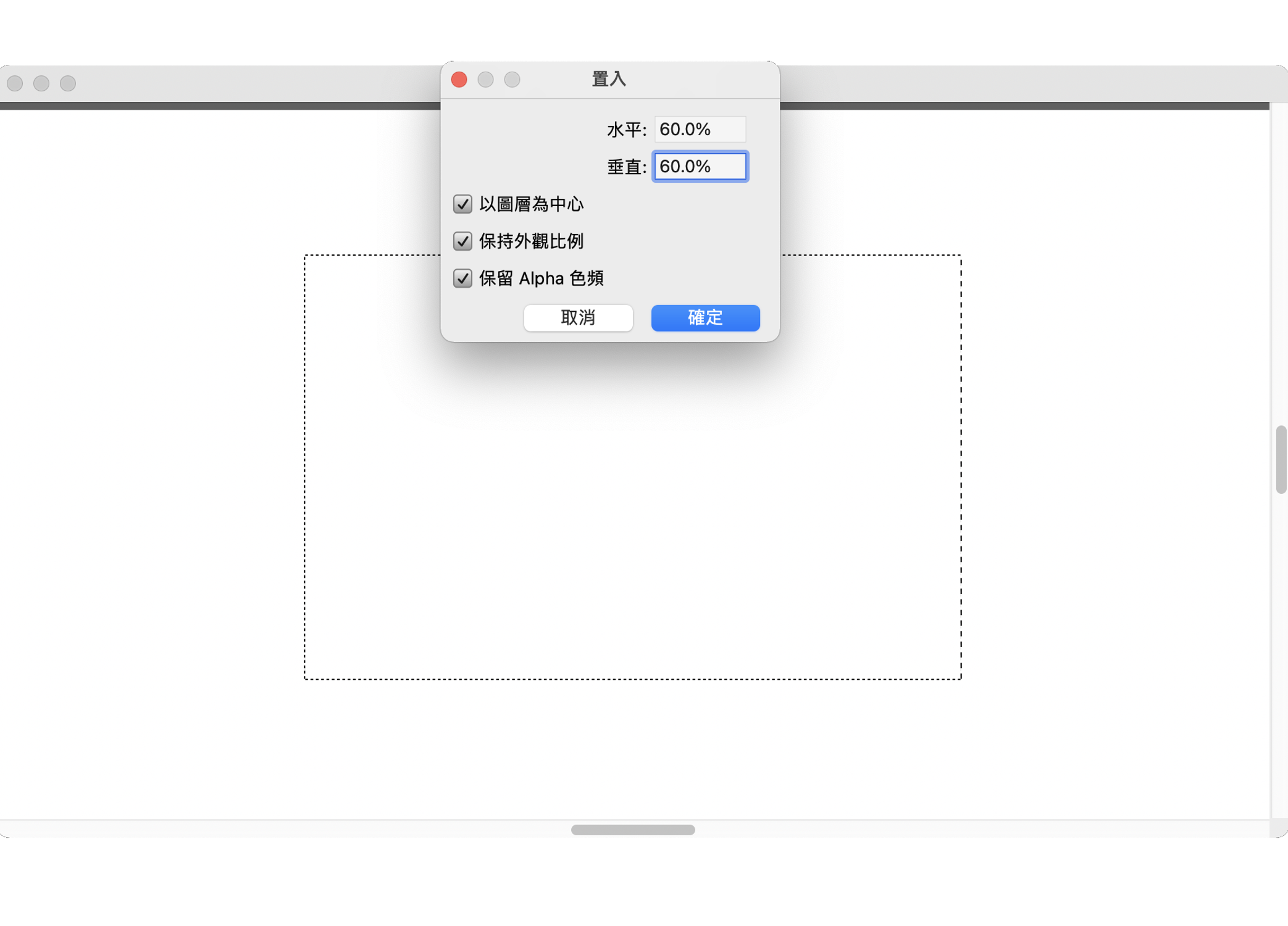 停用「 以圖層為中心」核取方塊,然後按一下您要放置影像的文件視窗中的區域。