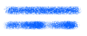 [液量のジッター] が適用されたブラシストローク: ジッターの滑らかさなし (上) とジッターの滑らかさあり (下)