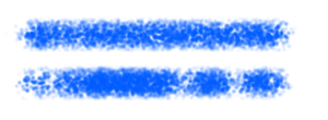 細目スプレー エアブラシ のブラシストローク: [密度のジッター] なし (左) と [密度のジッター] あり (右)