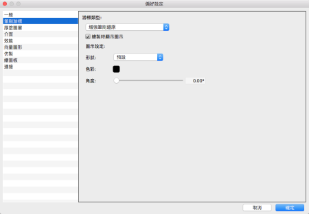 選取筆刷工具時,增強筆刷還原可呈現展示筆刷變體,但是不會主動繪圖。開始套用媒材時,增強筆刷還原即會變為圖示。如此能帶來反應更快的創意體驗,軟體能夠緊密追蹤觸控筆的動作產生筆觸,毫無延遲。如需有關筆刷游標設定的詳細資訊,請參閱筆刷游標偏好設定.