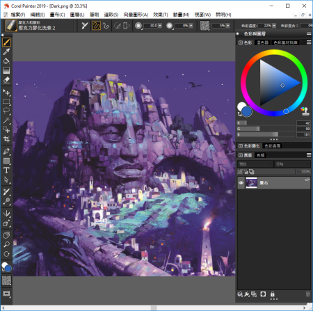 您可以選擇別具一格的專業介面,讓創作作品在作業畫面中更加凸顯。我們對主要使用者介面元素進行了精細的改進,加深 Corel Painter 2019 的主題色彩,如此可讓介面融入背景並將專注焦點投注到繪圖上。如需主題的詳細資訊,請參閱介面偏好設定.