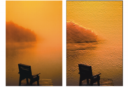 3D ブラシストローク効果の適用前 (左) と適用後 (右) のイメージの例