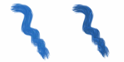 環境光があるブラシストローク (左) と環境光がないブラシストローク (右)