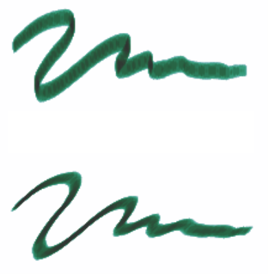 [厚み] が 100% (左) および 25% (右) のブラシストローク