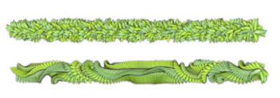 [角度のジッター] が適用されたブラシストローク: ジッターの滑らかさなし (上) とジッターの滑らかさあり (下)