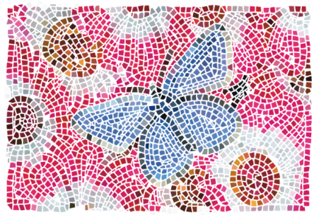 テッセレーション技術を使用してステンドグラスのようなモザイクを生成できます。テッセレーションはまずイメージを多数の多角形に分解し、それをタイルに変換したものです。