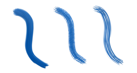 ブラシストローク例 (左から右): 半径のジッターなし、半径のジッターあり、半径ジッターと滑らかさあり