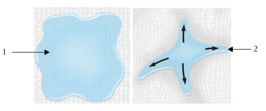 当流动阻力设置为较低的值时,水将自由流过画布 (1);而当阻力设置为较高的值时,流动将受阻 (2)。